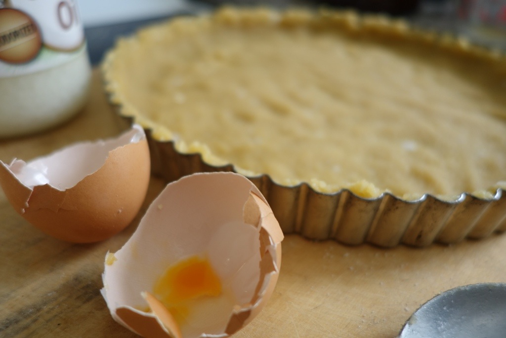 Press into the tin, blind bake for 10 minutes. While you are baking the crust, start making the filling.