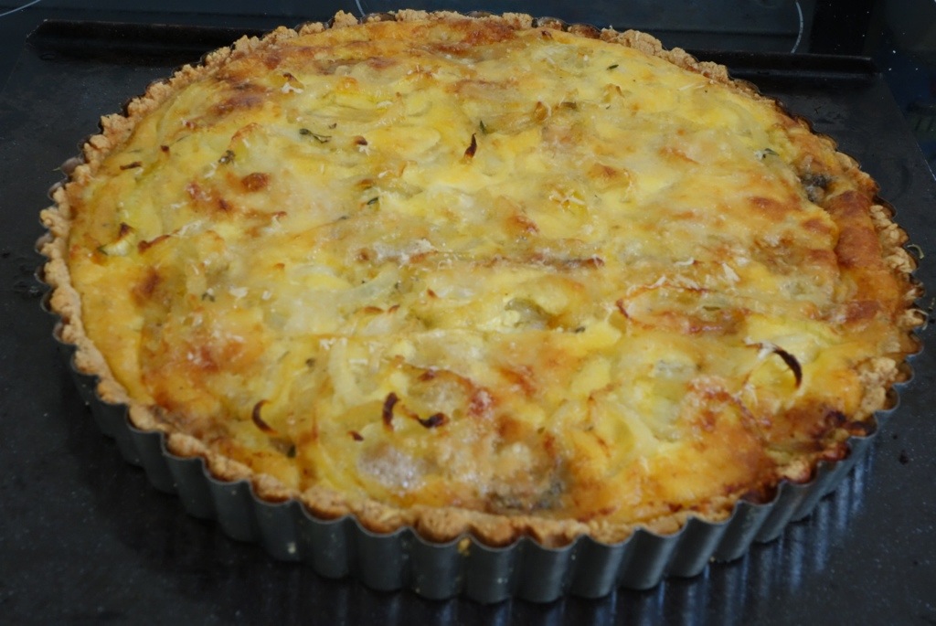 The result is a deliciously moorish pie. The almond crust is light and crispy yet melts in your mouth. Short and nutty, it’s a wonderful counterpoint to the sharp, richness of the cheese.