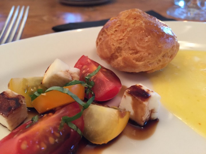 We started with gougere, fondue and a halloumi salad, above. Made by Featherston’s fabulous baker these were light, round crispy balls of deliciousness.